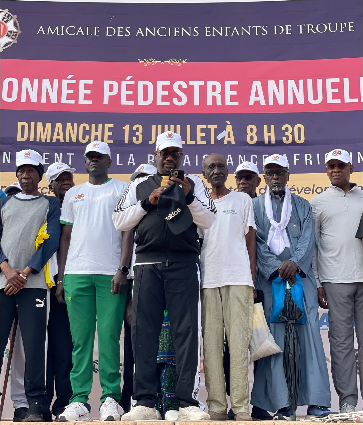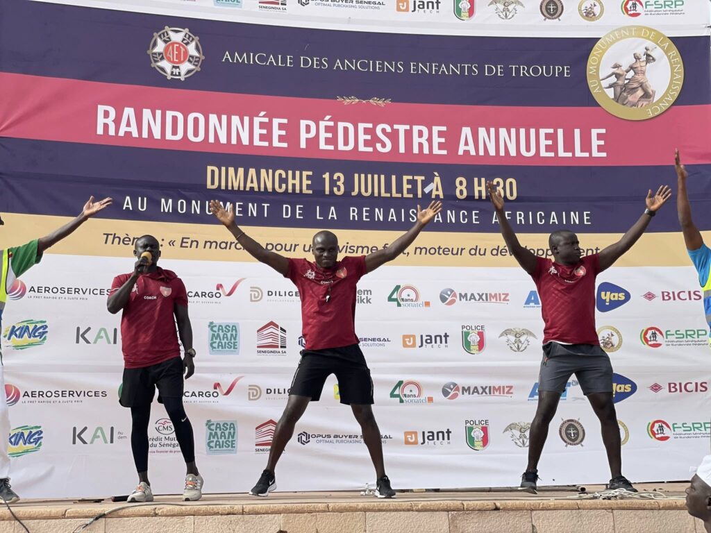 Le Monument de la Renaissance Africaine a été ce dimanche 13 juillet 2025 le point de départ et d’arrivée de la Randonnée pédestre annuelle de l’Amicale des Anciens Enfants de Troupe ( AET).
